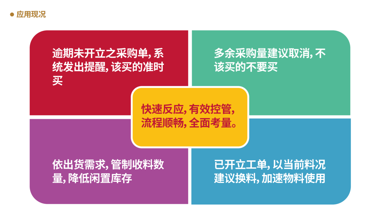MRP 采用无限产能,只透过前置期决定预计进料时程,可能会造成工单齐料率不高及频于催料, sAPS 可依关键料预计到料时间后安排生产计划, 再由预计开工日安排非关键料的进货时程。