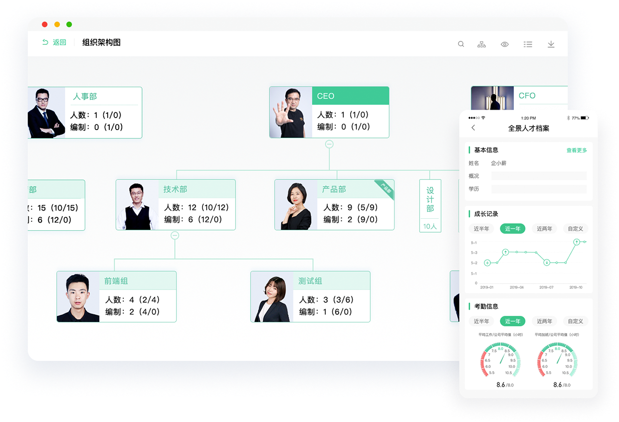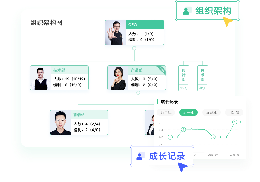 组织架构清晰可见,高效实现组织精进;更懂人事场景的工作流,入转调离轻松办理;全模块联动的职级体系,科学搭建人才梯队;全景档案,多维度刻画人才,提高用人决策准确率