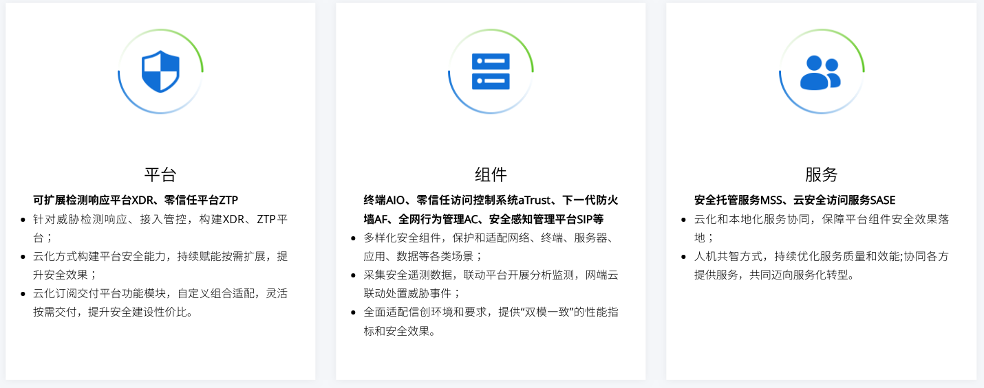 深信服以“平台+组件+服务”的价值交付方式,致力于让所有用户安全领先一步,体验领先一步,效果领跑一路。