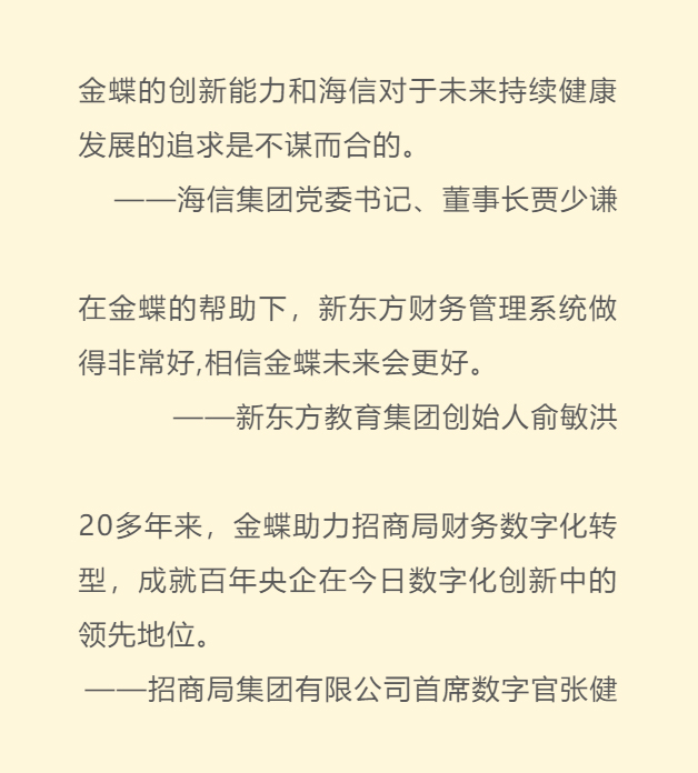 本次奖项的背后,不仅有金蝶人始终秉持“以客户为中心”的努力,更有金蝶客户的支持、反馈和信任。我们深知,唯有成就客户,才有今日金蝶;客户满意的背后,是更高的期待。未来,金蝶将继续从心出发,保持财务SaaS领域高水平服务的优势,并在税务、人力、制造等领域持续深耕,深入洞察各行业客户需求,用一流的产品、一流的技术、一流的交付、一流的服务成就客户,不负客户对我们的期待!